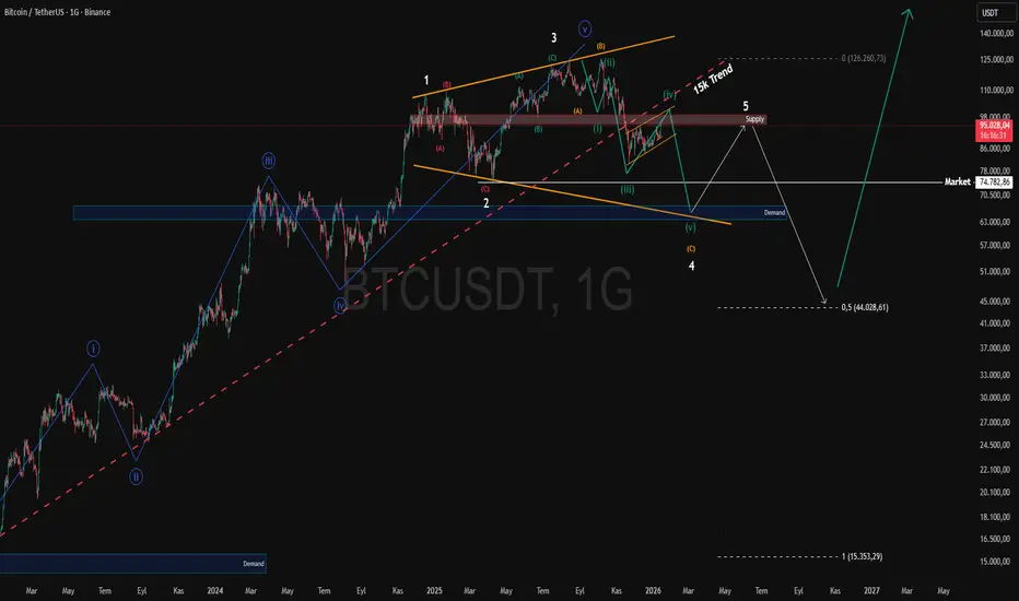 5. dalga içerisinde fiyat şu an alt dereceli bir düzeltme / sıkışma sürecinde.