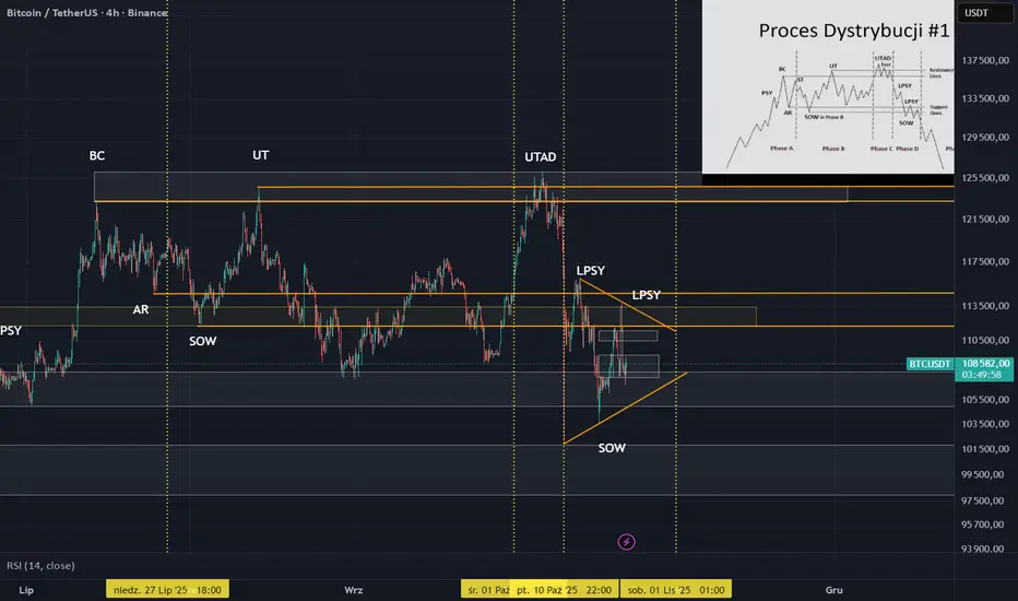 Osobiście nie chce być pesymistyczny ale... obecna struktura bitcoina wygląda jak struktura wyckoffa spadkowa ;)
