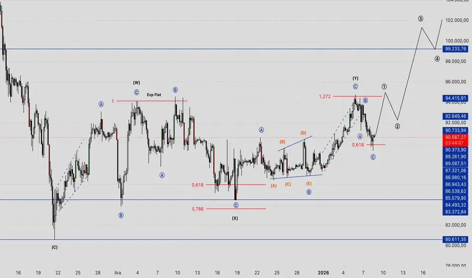 94k'dan gelen (A-B-C) düzeltmesi = C dalgası 0.618 retracement'ı