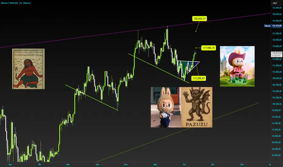 Labubu gücü adına bitcoin 117500 geçerse 122000 dolara geçebilir.