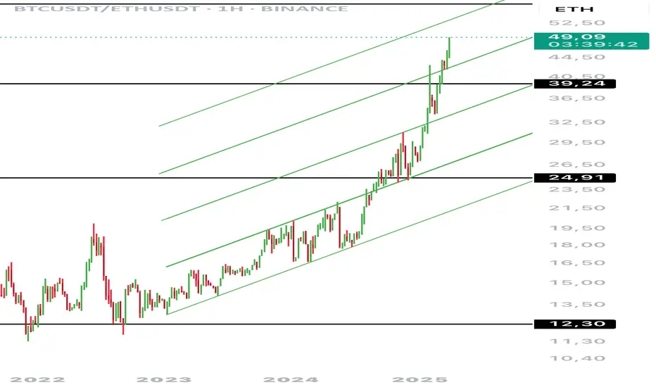 Fiyat, son aylarda oluşan yükselen kanalın üst çizgisine veya 57,67 direncine geldiğinde BTC için short, ETH için long işlemi düşünülebilir.