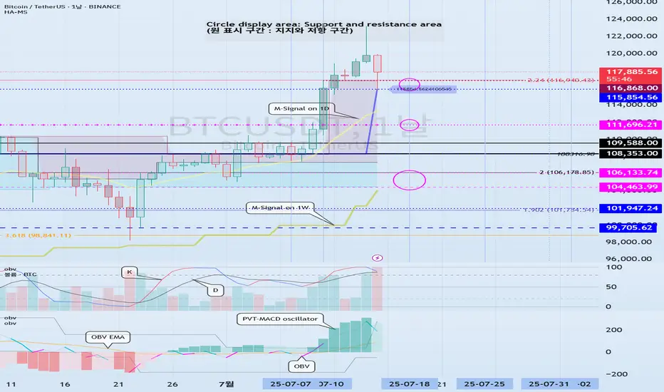 HA-High 지표가 115854.56 지점에 생성된다면, 그 부근에서 지지 받고 상승할 수 있는지가 관건입니다.