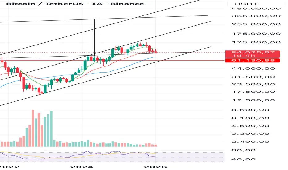 Bitcoin aylık grafiğinde çanak kulp direncini kırmış ve hedefe gitmeden tekrar onaya gelmiş.Şubat ayını yeşil mum ile kapatırsa yeni bir yükseliş onayı olabilir ve buradan 160-180.000$ aralığına gidebilir yada 82.000$ aşağı kırarsa 60.000 kanal desteğine dokunup oradan tekrar yükselişine devam edebilir.Her iki senaryoda da uzun vade de yukarıda kanal tepesini yani 300 k ve üzerilerini göreceğini düşünüyorum.Tabiki nasip ve kısmet,iyisini Allah bilir!Siz bana göre yatırım yapmayın,ben kendimi eğlendiriyorum burada.