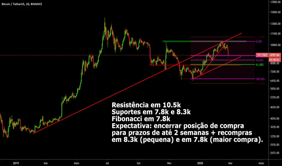 Expectativa: encerrar posição de compra para prazos de até 2 semanas + recompras em 8.3k (pequena) e em 7.8k (maior compra).