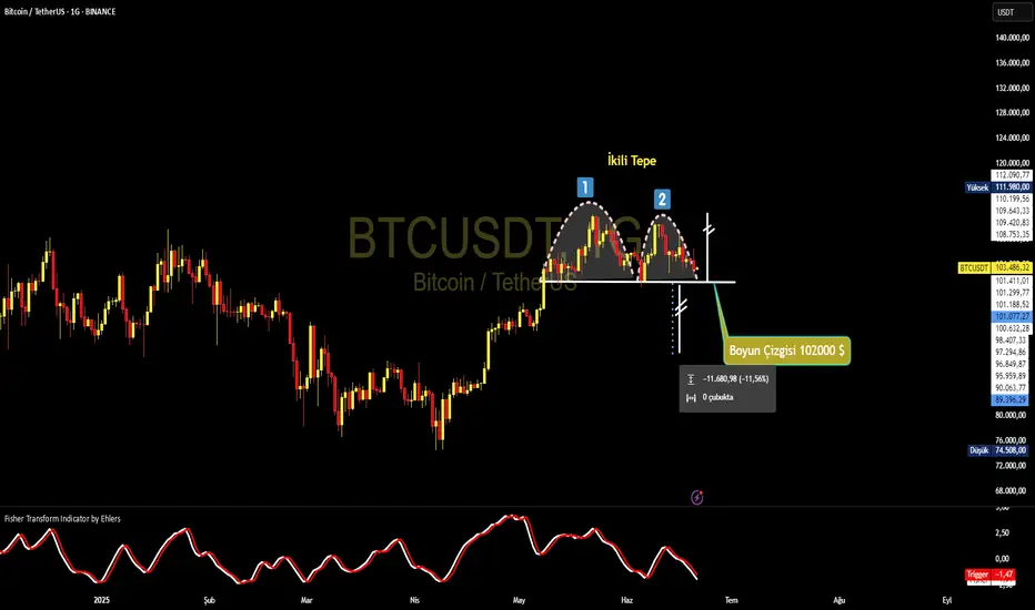 Formasyon henüz başlamadı ama boyun çizgisi 102000 ler aşağı yönlü ihlal edilirse ölçü kadar geri çekilme gerçekleşir..