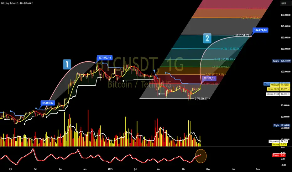 Tillson 84899$ üzerinde pozitif tarafta işlemler ile yukarı trend devam ediyor .Kritik eşik 89322 $ seviyesi geçilebilirse dah önce 1⃣ no da yaşanan ralli 2⃣ no da 132000$ a kadar devam edebilir.