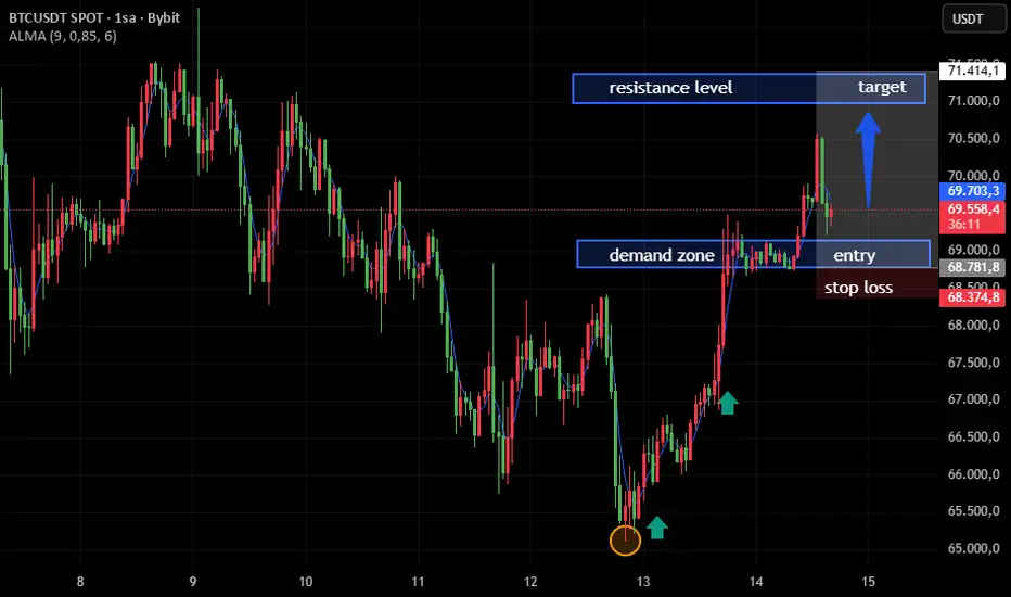 1️⃣ Talep Bölgesi Korunuyor (≈ 68.700 – 69.000)