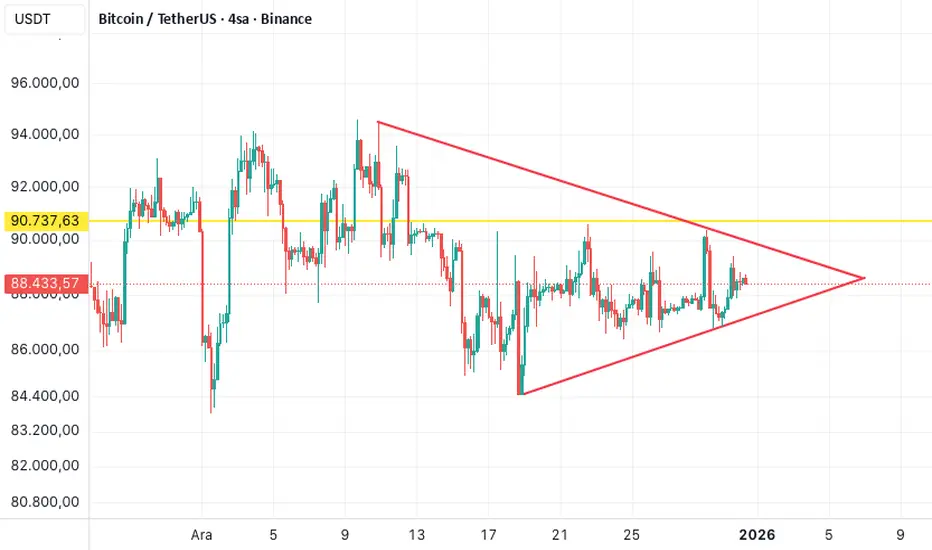 Lower highs + higher lows yapısı momentumun azaldığını ve yakın bir kırılımın geldiğini gösteriyor.