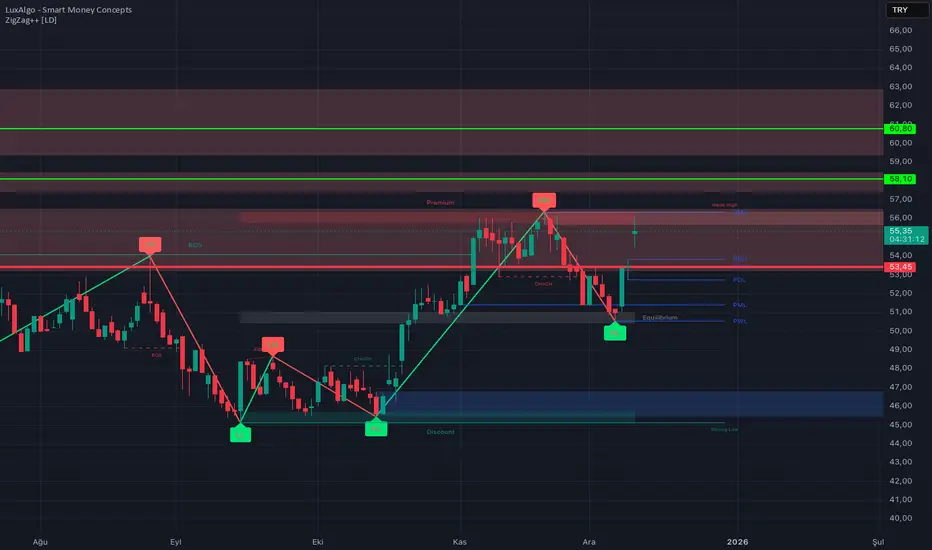 Teknik analiz verilerine göre CCOLA, 4 saatlik periyotta 55.30 TL seviyesinde işlem görmektedir. belirginleşen Çift Dip formasyonu dip oluşumunun tamamlandığını göstermektedir, Alçalan Takoz formasyonunun yukarı kırılımı düşüş trendinin sonlandığı sinyalini vermektedir, fiyatın 200 periyotluk ortalamanın üzerinde olması pozitif görünümü desteklemektedir, Bollinger bantlarındaki daralma volatilite patlaması beklentisi yaratmaktadır, hacimdeki belirgin artış yükseliş isteğini doğrulamaktadır. Bu teknik görünüm altında, 53.44 TL seviyesi stop-loss (zarar kes) olarak belirlenerek, sırasıyla 58.09 TL ve 60.88 TL hedefleriyle işlem stratejisi kurgulanabilir. Risk/Ödül oranı 1:1.50 olarak hesaplanmıştır. Yatırım tavsiyesi değil kendi görüşümdür