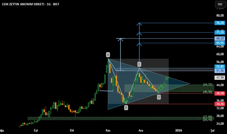Simetrik üçgenin alçalan üst band sınırında olan fiyat özellikle 52.85 üzerinde günlük mum kapanışı yapması durumunda, sırasıyla grafikte belirttiğim seviyeleri hedefleyebilir.