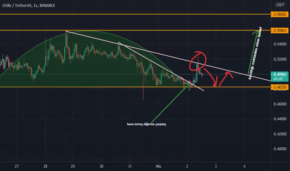 ☁ CHZUSDT ters çanak görünüyor, trend çizgilerine bakınca ilk çizgi yukarı yönlü kırıldı ancak diğer trend çizgisinden geri döndü. O çizginin kırıldığı noktadan artış beklenebilir. İtibar puanı için beğenilerinizi bekliyorum.
