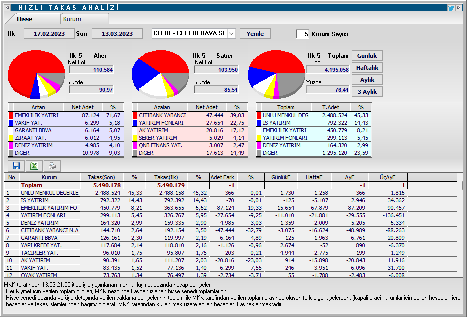 17 şubattan sonra takasın sağ tarafında değişiklik olmaya başladı. Özellikle son 2 haftada emeklilik fonları alım tarafında. Bu da acaba dibi gördük mü? Yoksa dip çalışması mı yapıyoruz sorularını getiriyor gündeme #clebi de
