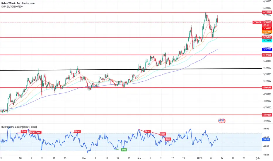Metaller genelindeki yükseliş eğilimiyle birlikte bakırın da kendi fiyat dengesini bulduğunu söylemek mümkün. Teknik görünüm, ana trendin yukarı yönlü kaldığına işaret ederken kısa vadede düzeltme hareketlerinin sağlıklı olduğu bir yapı izleniyor.