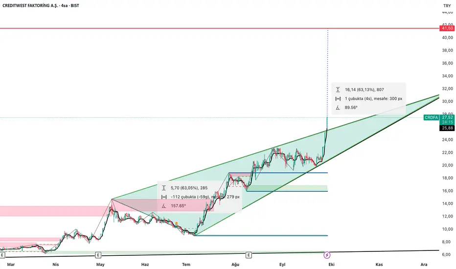 21 tl seviyesinden işaret ettiğim CRDFA 3. tavanında ve hedef noktam kısa vadede 41.50 tl dir.