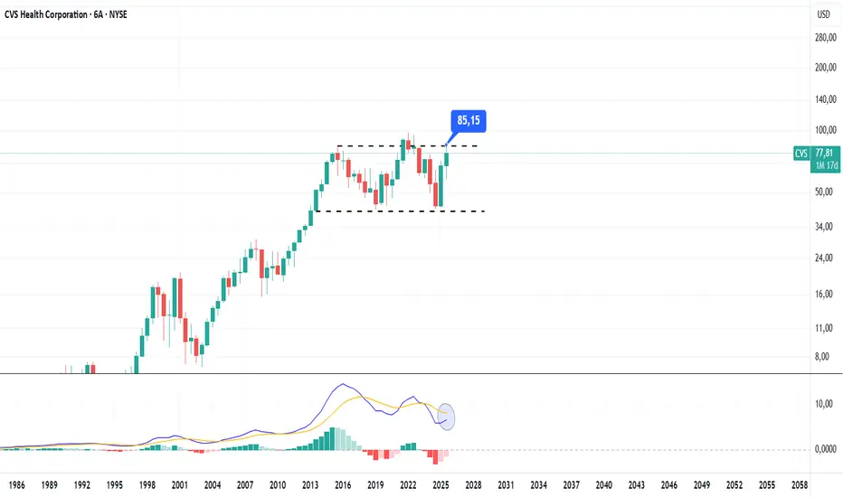 CVS 6 Aylık uzun vadeli grafikte güzel bir konsolidasyon mevcut 85 üstü hareket için alan açacaktır
