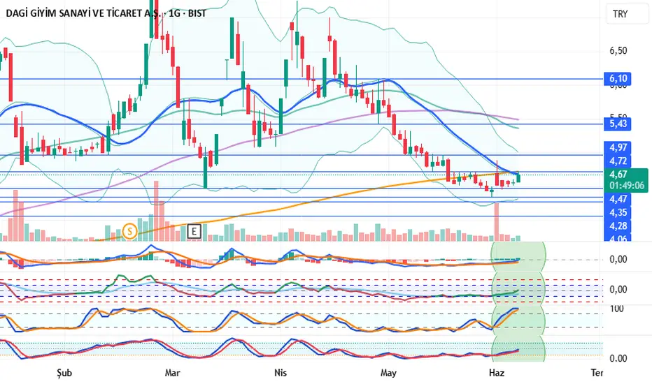 Günlük teknik indikatörler Pozitif. Hisse 4,47 destek seviyesi üzerinde tutunmayı başarmış durumda. Şuan ise 21 günlük fiyat ortalamasını (469 civarı) yukarı kırmaya çalışıyor. Kırabilir ise aynı zamanda 4,72 direncini de kırmış olacaktır. 21 Günlük ortalama ile 200 günlük ortalama aynı seviyededir. Hisse de pozitifliğin devam edebileceğini düşünüyoruz.