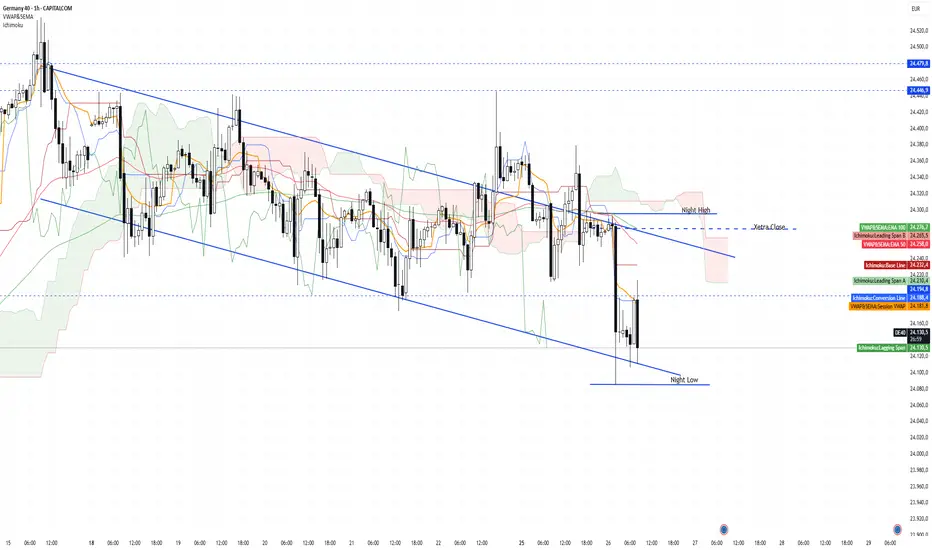 – EMA-Lage: EMA50: 24.260 · EMA100: 24.275 → Kurs darunter, bestätigt Abwärtstendenz