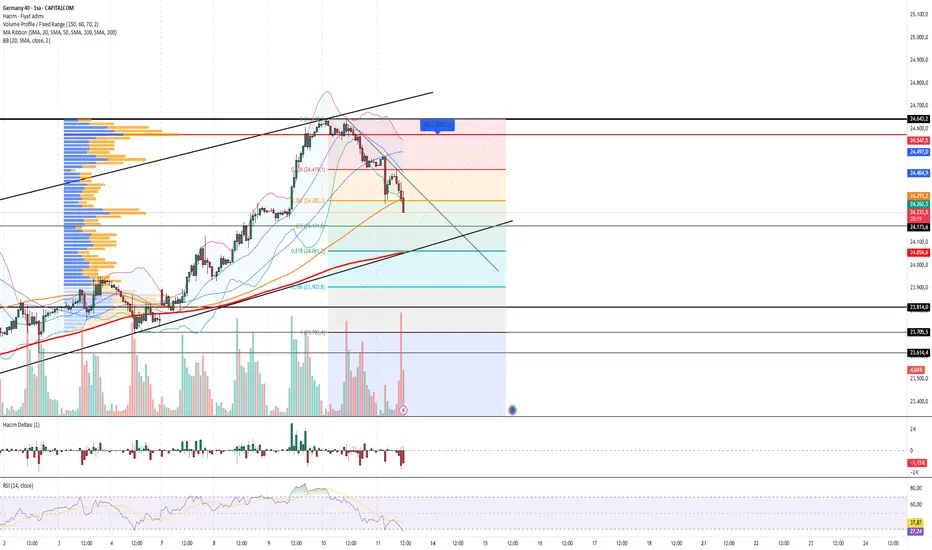 📌 ÖzetDAX endeksi kısa vadede teknik baskı altında. 24.173 desteği kırılırsa 24.054 ve ardından 23.814 seviyelerine doğru geri çekilme hızlanabilir. Ancak RSI'ın aşırı satımda olması kısa vadeli tepki ihtimalini de canlı tutuyor.