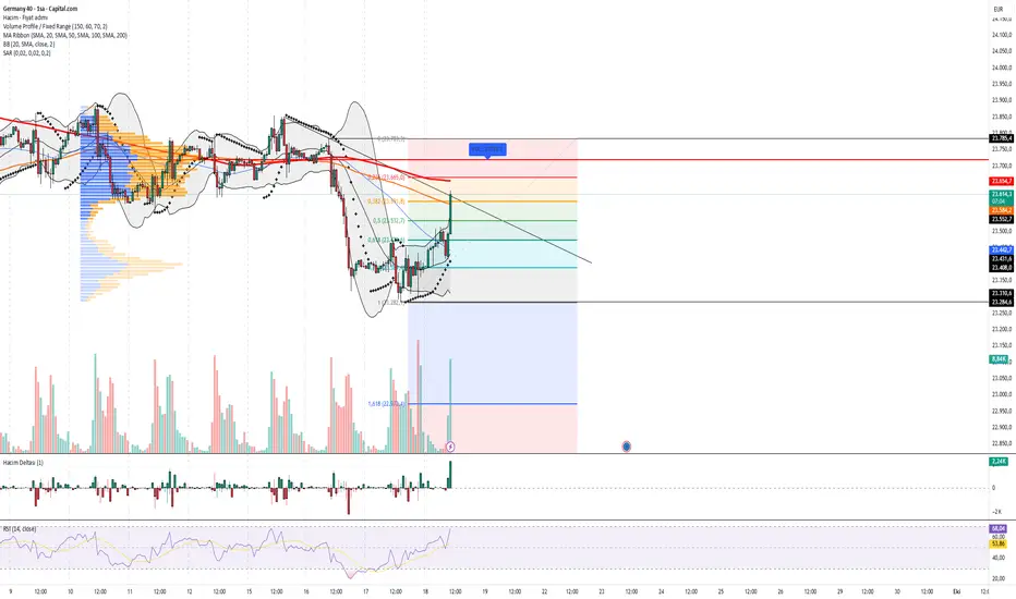 📌 ÖzetDAX, 23.532 üzerinde kaldıkça toparlanma isteğini sürdürüyor. 23.719–23.783 direnç bölgesinin kırılması halinde yükseliş 24.000 seviyelerine doğru genişleyebilir. Ancak RSI yüksek ve Bollinger üst bandına yaklaşılmış olması, kısa vadede bir düzeltme riskine işaret ediyor.