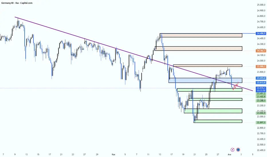 🕹️ Kısa vadede fiyat hareketi negatif görünse de, geniş zaman diliminde pozitif trend korunuyor. Bu nedenle 23.451,2 destek bölgesindeki fiyat tepkisi yön tayini açısından kritik önem taşıyor. 👀
