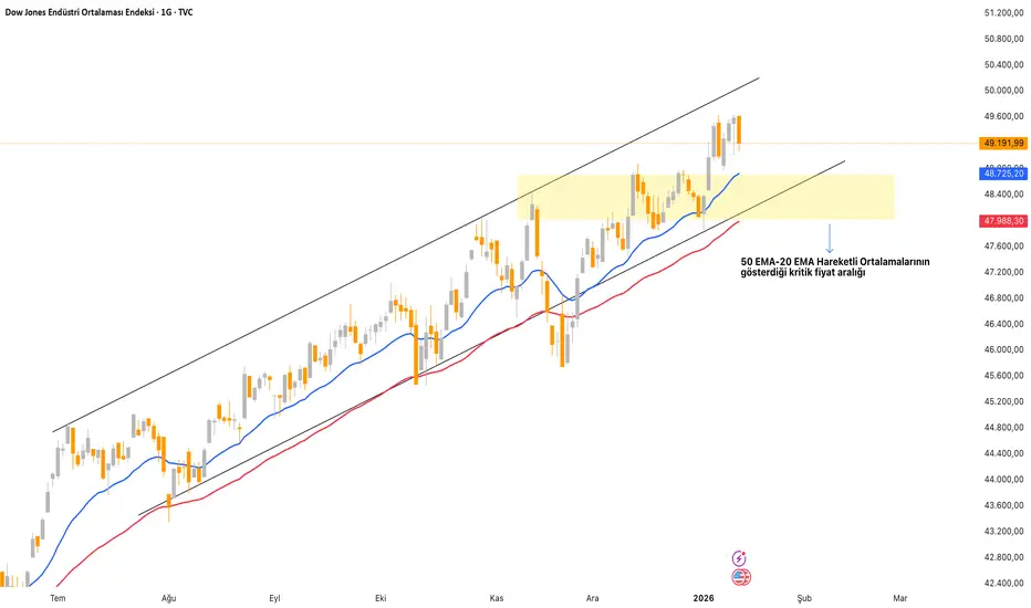 Teknik anlamda 50 günlük üstel hareketli ortalama ile 20 günlük üstel hareketli ortalamaların gösterdiği fiyat aralığı Dow30 için önemli olabilir.