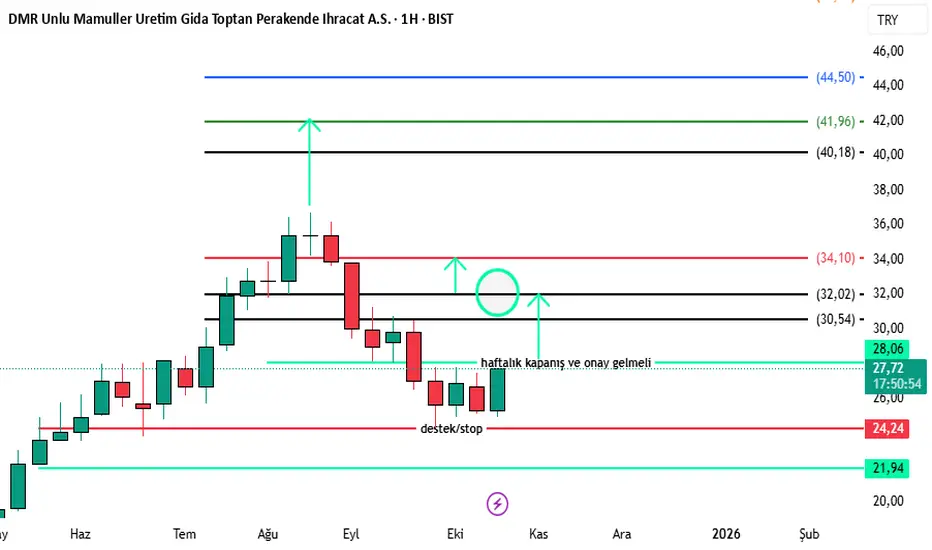24.24 desteği üzerinde pozitif. Altında stop. 28 üzerinde günlükte kalıcı olmalı. Haftalık daha garanti olur. üzerinde 32 ler hedeflenir. 32 üzerinde günlük kapanışlarda 34 takipte olmalı. Zirve üzerinde gelecek olan haftalık kapanış ve onay ile yükseliş daha da devam eder. Stopsuz hareket etmeyelim. Her geçtiği direnci destek olarak düşünebiliriz. Stoplarınızı da buna göre ayarlayabilirsiniz. ortalamaları kullanabiliyorsak ondan da yararlanabiliriz.