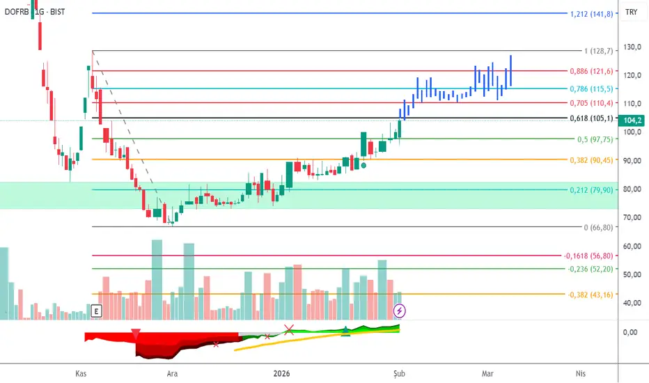 0,618 sonrası en önemli seviye fibo 1,00 seviyesi, 128TL civarı