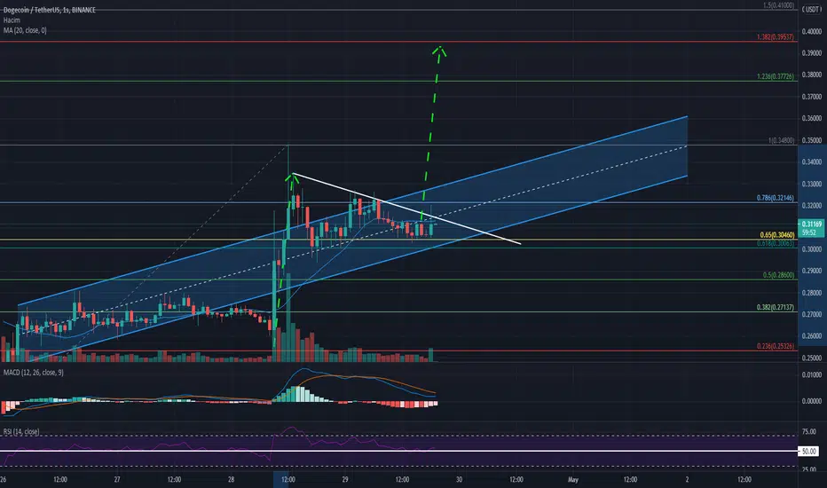 Yükselen kanalın ve fibonacci golden pocket'ın destek olduğu DOGE, beyaz trend çizgisini kırmasıyla yükselişe geçebilir. Ancak altındakki golden pocket aralığı altına düşerse kısa vadeli yatırımcılar, stop olmayı tercih edebilir.