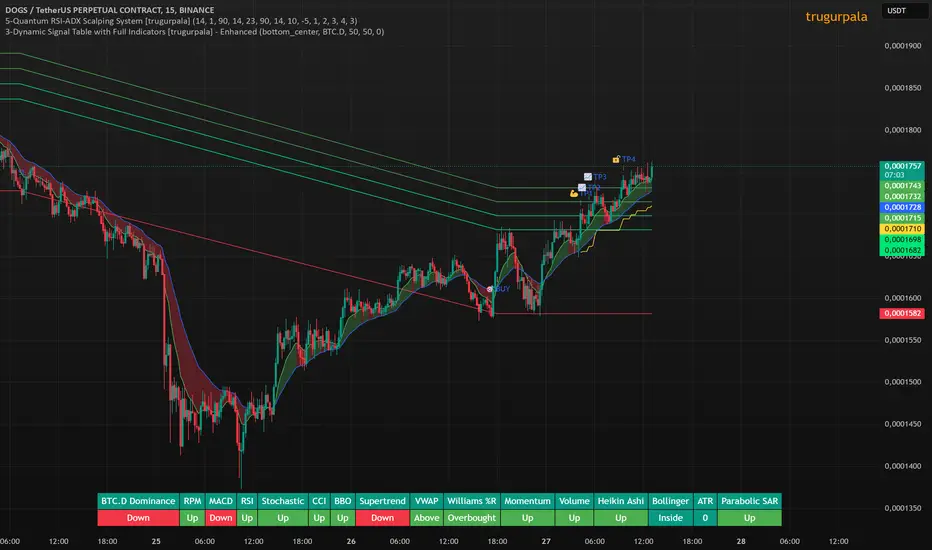 🔹 Parabolic SAR & Bollinger Bands: SAR "Up" konumunda, fiyat Bollinger bantları içinde işlem görüyor.