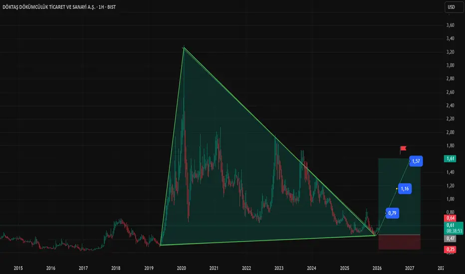 Portföye 28,30TL bandından DOKTA hissesini ekliyoruz. 2020 yılında 3,27$ fiyat bandından başlayan kar satışları ile günümüze geldiğimizde 0,45$ fiyatından toparlanmanın başladığını ve 0,64$ fiyatından işlemlere devam ettiğini görüyoruz. Haftalık USD periyotta üçgen formasyonunun gözlemlendiği haftalık nakit akışının sonra bir aydır gerçekleştiğini aylık olarak trendin henüz oluşmadığını ancak haftalık olarak kesin trendin oluştuğunu ve trend yönünün yukarı olarak revize olduğunu momentum ve Obv sinyal değişimlerinin aylıkta nötr haftalıkta pozitif çalışması sebebi ile DOKTA orta ve uzun vadede yatırım yapıla bilinir seviyelerde diyebiliriz. Ana destek noktasının 0,55cent olarak referans alınması doğru olur ancak ana destek seviyelerine kadar geri çekilmenin yaşanacağın kanaatinde değilim.
