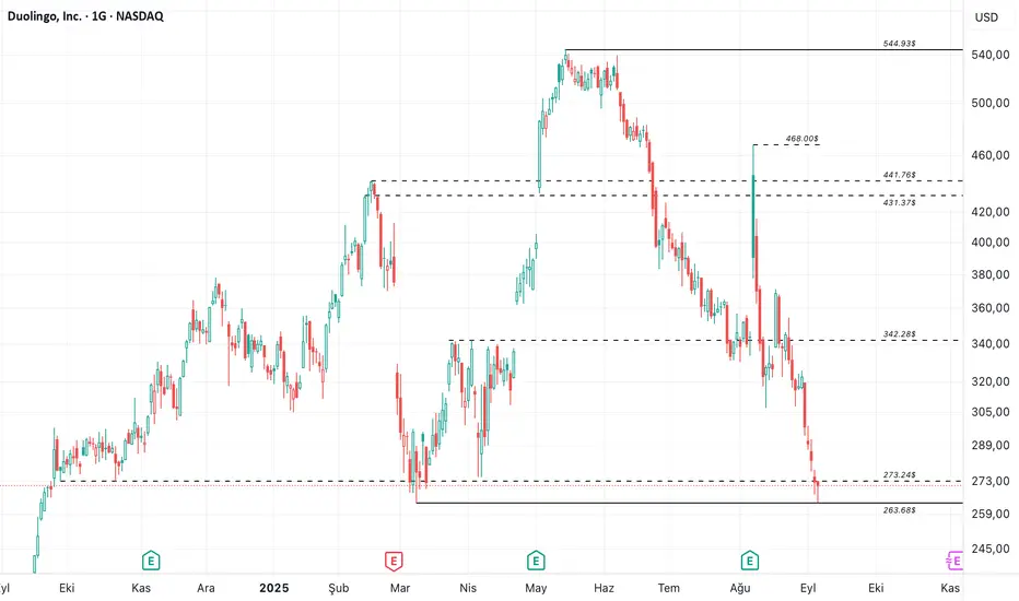 Dil öğrenme modelleri sunan Duolingo fiyatlaması incelendiğinde yapay zeka destekli dil çözümlerinin piyasada tanıtılmaları ile birlikte hisse fiyatında geri çekilmeleri beraberinde getirmiş görünüyor. Şirketin son verilerine bakıldığında günlük aktif kullanıcılarını %40 arttırdığını görüyoruz. Kabul etmek gerekiyor ki yapay zeka destekli dil çözümleri önemli bir sınırlılık oluşturmakla birlikte şirketin büyüme ivmesinde olumsuz görünen bir veri güncel durumda bulunmuyor. Hisse fiyatlaması ise bu bağlamda önemli bir fırsat barındırıyor olabilir.