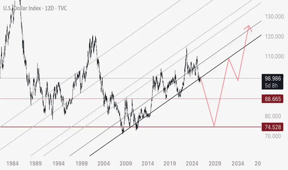 I draw here my expected DXY path - and related to that, the span of a true bull market on stocks and equities (4-7 years long beginning current)