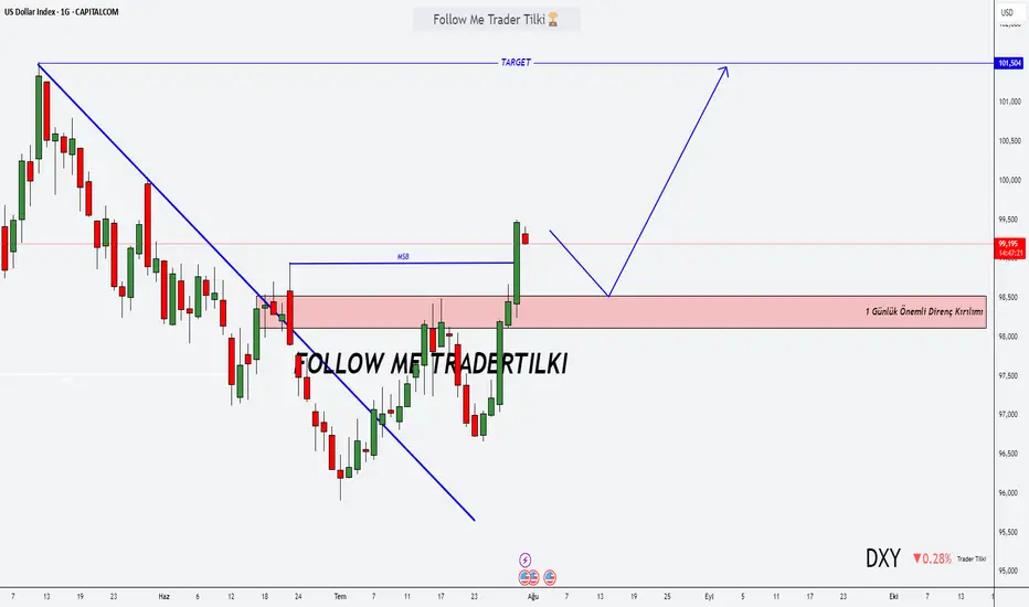 Geçtiğimiz günlerde DXY için 98.950 seviyesinin kritik bir eşik olduğunu vurgulamıştım. Bugün itibariyle bu seviye yukarı yönlü kırıldı ve beklediğimiz yükseliş hareketi başladı. 📈