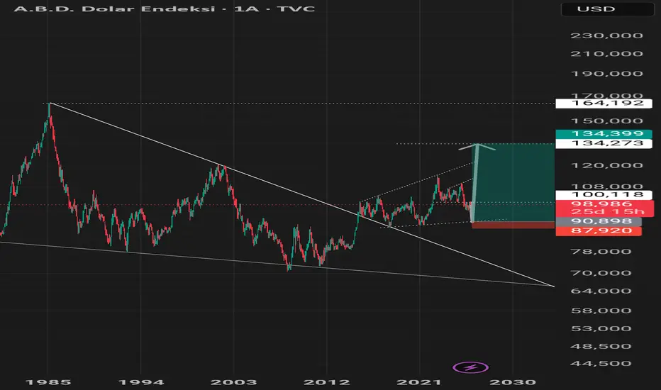 Yarisindan fazlası eur olan bu dolar endeksi abc dalgasının c fazını yaşayıp buyuk hareketine kalkmaya hazır.