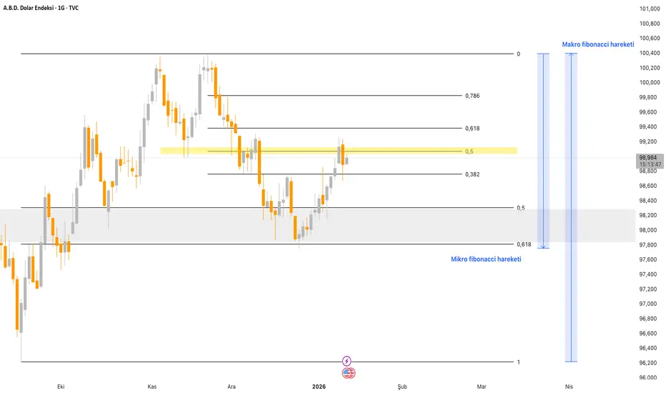 Teknik anlamda hem mikro hem de makro olarak takip edilebilecek fibonacci çalışması grafik üzerinde gösterilmiştir.