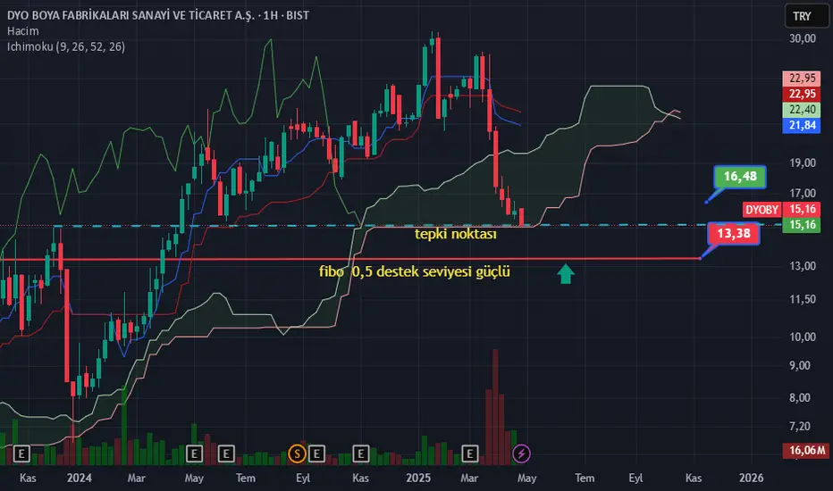 #dyoby haftalık tepki noktasına gelmiş durumda... burdan tepki verirse 16,48 seviyesi direnç bölgesi okur...