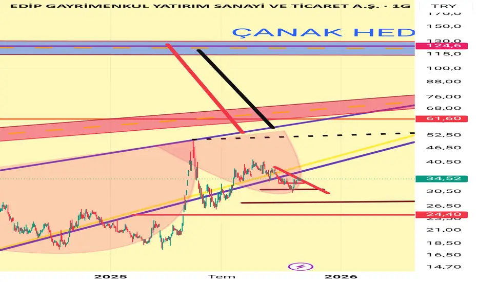 Faizlerin düşmesi ile birlikte Gayrimenkul yatırım ortaklığı hissselerine ilginin daha da artacağını düşünüyorum.Edip gayrimenkul firmasının da PD/DD değerine bakıldığında 0.38 olduğunu ve fiyatinin göreceli ucuz kaldığını net bir şekilde gorebiliriz. Çanak tamamlanmış ve kulpun da tamamlanma sürecinde oldgunu görmekteyiz.Onumuzde ki süreçte 60 TL lerin üzerinde 2 günlük kapanış çanak hedefi olan 124 TL lere fiyatı taşıyabilir.Fiyat hedefe ulaşmasının ardından olası düzeltmeler de kırmızı kanal takip edilebilir.İlgili kırmızı kanal haftalikta düşen dirence denk gelmektedir.İlgili analiz tamamen hayal ürünü olup kesinlikle yatırım tavsiyesi değildir.