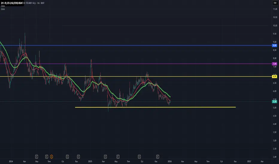 İki tür yatırımcı düşüncesiyle destek den almak istiyorsanız alt sarı çizgiden alım düşünülebilir.Sarı çizgi altı kapanışlar da zarar kes uygulanmalı.Trend takipçisi iseniz yukarıdaki sarı çizgi üzeri kapanışlar aramak aramak şartıyla işleme girilmeli.İlk kar al noktamız çıkışın fibo 1.414 denk gelen 7.68 satış yapılmalı.7.68 üzeri kapanışlar gördüğümüzde tekrar işleme girilmeli ana hedef 8.80 kar alınmalı.
