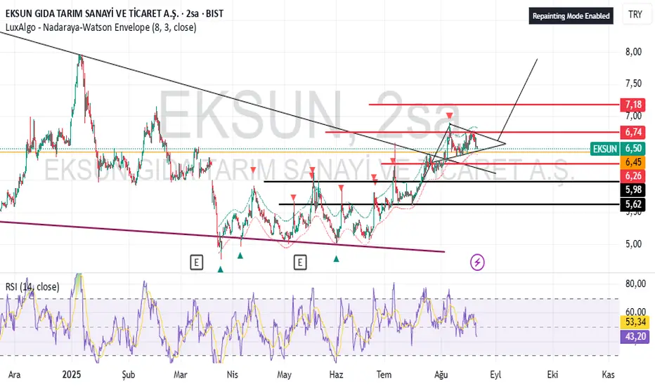 bayrak formasyonu yapıyor gibi ama 6,44 altına salarsa bayrak bozulur