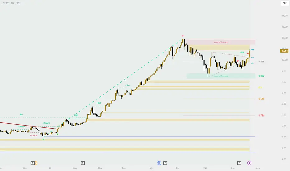 ENERY, büyük rallinin ardından orta vadeli düzeltme yapısını tamamlıyor ve yeniden yön arayışında. Hem yapısal SMC analizleri hem de temel göstergeler kritik seviyelere işaret ediyor.