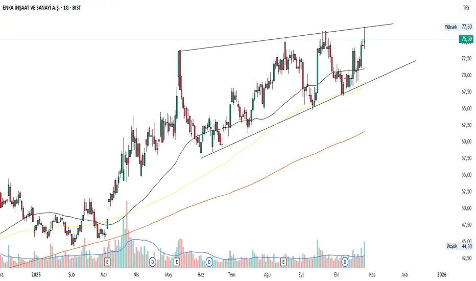 hareketli ortalamlar fiyatın altında oluşan formasyon görselde gözüktüğü gibi tamamlanmak üzere olup kırılım yönü takip edilmelidir. kesinlikle yatırım tavsiyesi değildir