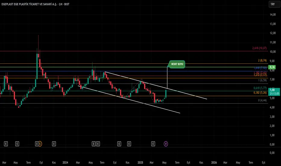 Haftalık grafikte DÜŞEN KANAL TRENDİ formasyonu bulunduran hissede MACD 0 üzerine atmışken SAFAKHOMETECHNICAL fibo çizgileri destek ve direnç olarak takip edilebilir. YTD...