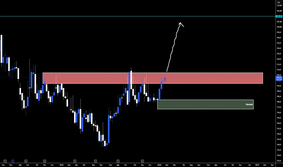Hedefi 260Tl olarak gördüğüm hisse bu noktadan takip edilmeye değer. Altında ki yeşil bölge çok önemli destek seviyesidir.