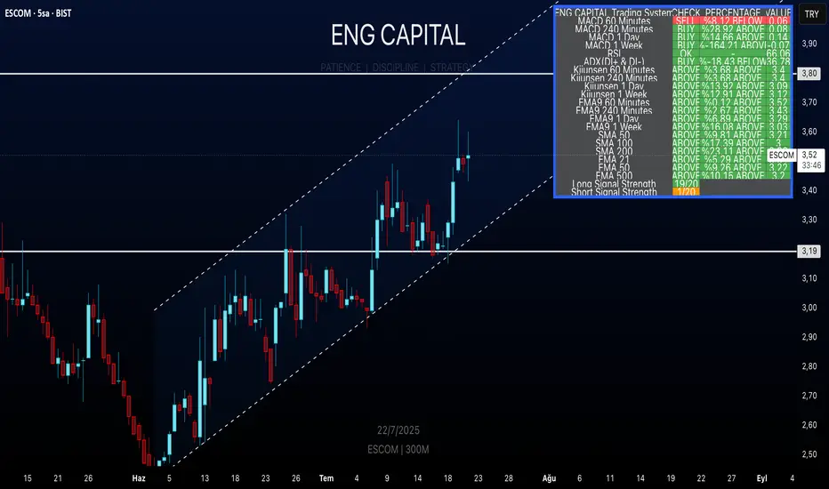 Son günlerde yükselen trend içerisinde olan ESCOM 3,19 üzerinde kalıcılığını onayladı.