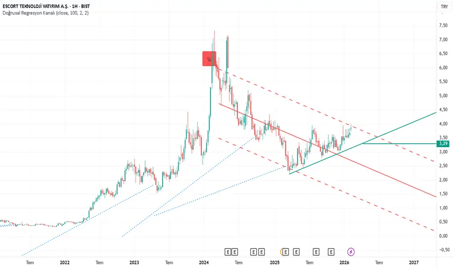 ESCOM da gün grafikte daha önce 2 kez aşamadığı direnç bölgesinde olduğumuzu takip etmekteyiz. 3.29 altında kapanış gelmedikçe, Yükselen dip trend kırılmadıkça düşüşler alım fırsatı sunabilir.