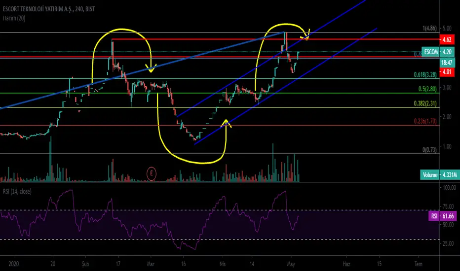 Market bize gülmeye başlamış. Mavi ile çizilmiş trend kırılmış tekrardan aynı trendin içinde seyrediyor. FİBO 4,86 Seviyesi önemli deneme olmuş ama kıramamış. Kırmızı ile çizlimiş dirençlere dikkat edilerek. Mavi trend çizgisi içersinde kalıcaktır. Kesinlikle AL SAT TAVSİYESİ DEĞİLDİR. YTD !!!!