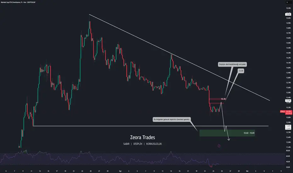 Diğer bir ihtimalde ise, güçlü alıcıların devreye girmesiyle Ethereum dominansın 13.35 üzerini kırması halinde düşüş trendi zayıflayabilir ve daha yüksek seviyelere doğru bir hareketlenme görebiliriz.