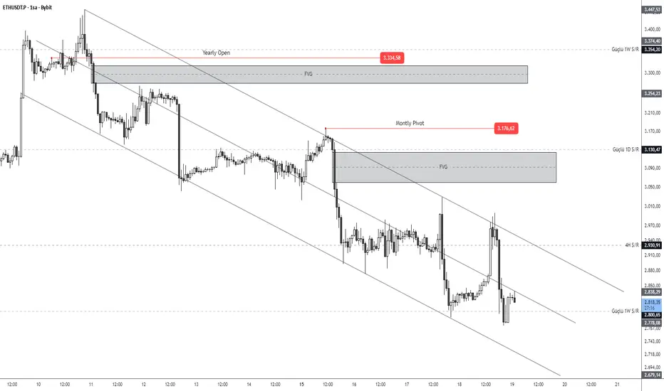 ETHUSDT – HTF Seviyeler & Düşen Kanal Yapısı