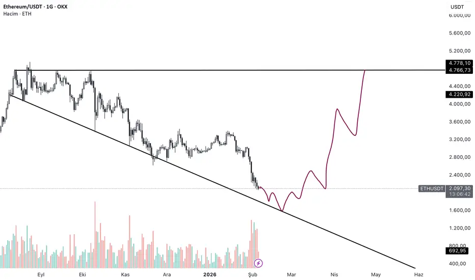 Ethereum’da mevcut yapıyı incelediğimde, kısa vadede bir miktar daha düşüş / fitil ihtimalinin masada olduğunu düşünüyorum.