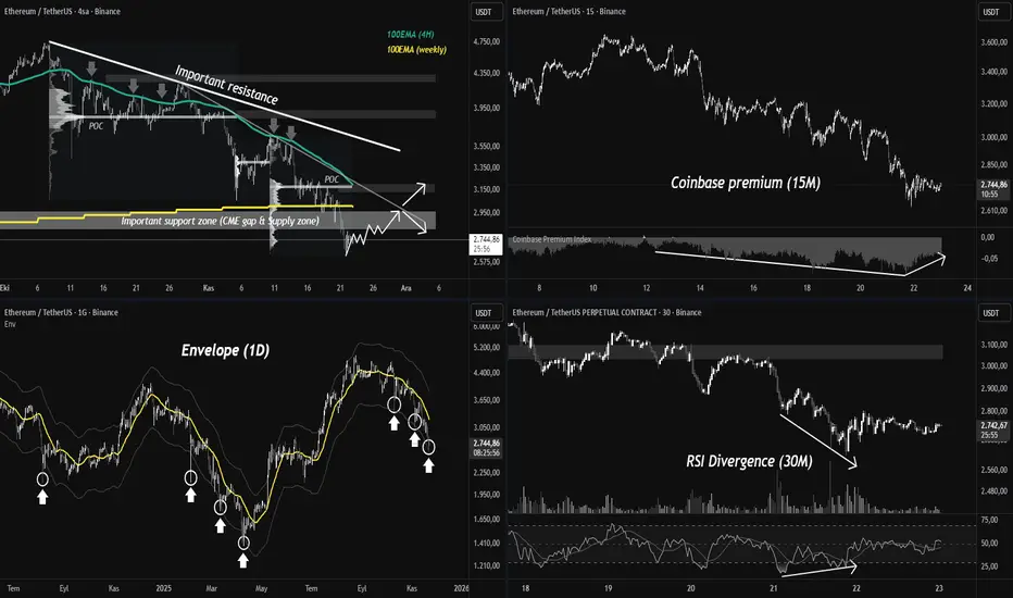 ETH şu anda tam olarak alt bantta işlem görüyor ve bu durum istatistiksel olarak geçmişteki kısa vadeli dip oluşumlarıyla örtüşüyor.